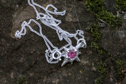 Sterling Silver Star Necklace with pink tourmaline