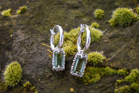 Forestfae Sterling Silver Hoops with green amethyst