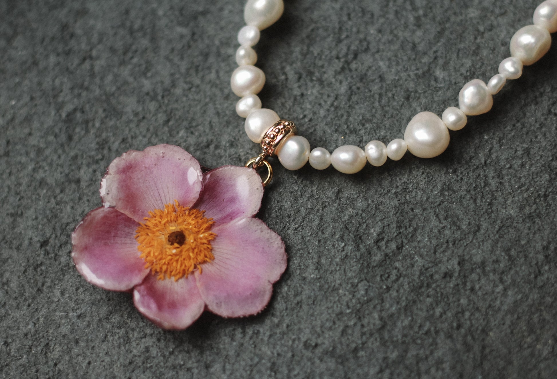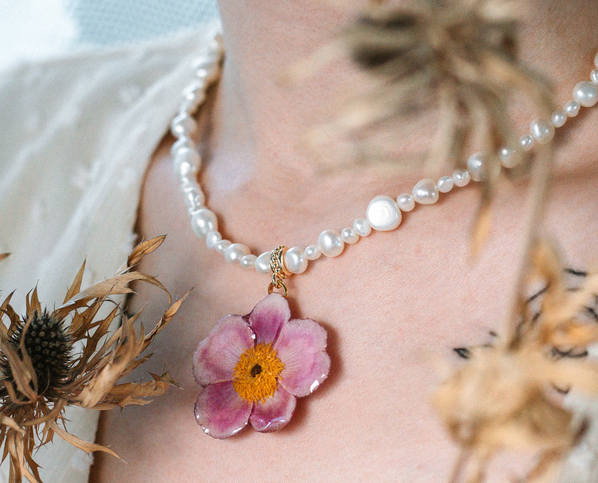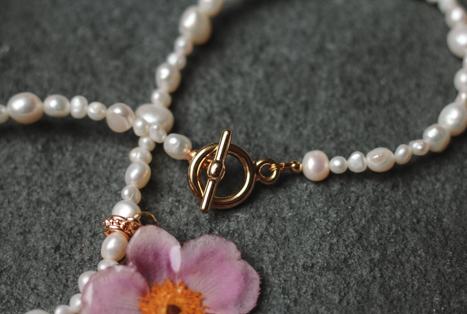 Material: 14k gold-plated I freshwater pearls I anemone I toggle clasp I resin